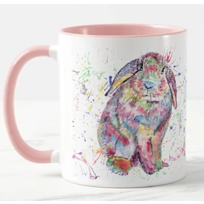 Vixar Lop Rabbit Bunny Eared Watercolour Rainbow Art Coloured Mug Cup Gift Birthday Easter Work Office Christmas Tea Coffee (Pink)