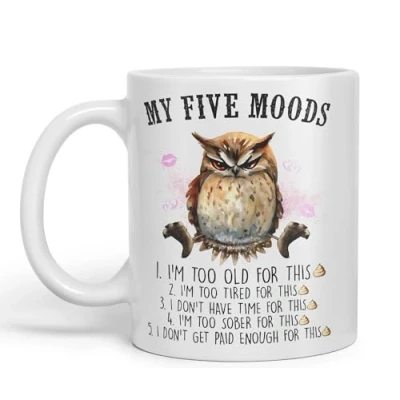 Vixar My Five Moods owl Sarcastic Joke Ceramic Coloured Mug Cup for Tea Coffee Hot Brew 330ml 11Oz (White)