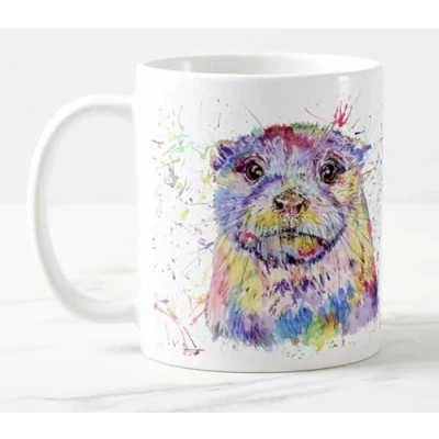 Vixar Otter British Wildlife Watercolour Art Coloured Mug Cup Gift Birthday Work Office Christmas Tea Coffee (White)