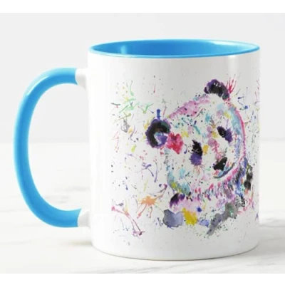 Vixar Panda Watercolour Rainbow Art Coloured Mug Cup, Gift, Birthday, Work, Office, Christmas Tea Coffee (L Blue)