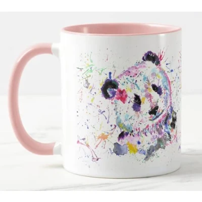 Vixar Panda Watercolour Rainbow Art Coloured Mug Cup, Gift, Birthday, Work, Office, Christmas Tea Coffee (Pink)