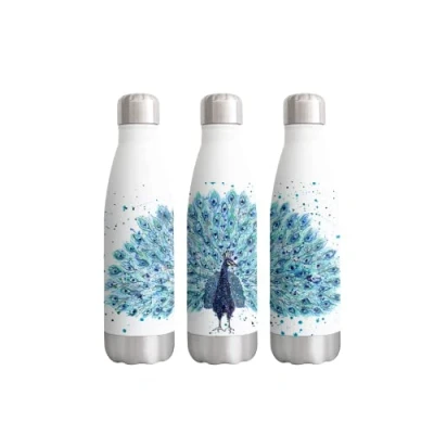 Vixar Peacock Bird Watercolour Rainbow Art Bottle Double Wall Insulated Stainless Steel Sport Drinks 500ml White Gift Ideal for School Work Office Oudoor Sports Keeps Hot and Cold