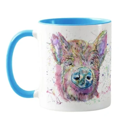 Vixar Pig Farm Animal Watercolour Rainbow Art Coloured Mug Cup, Gift, Birthday, Work, Office, Christmas Tea Coffee (L Blue)