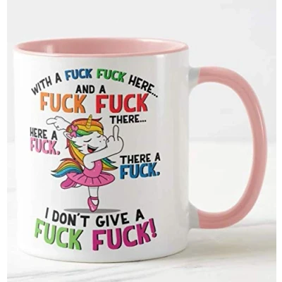 Vixar Pink Mug Unicorn with a ... here swaering 11oz Cup Coffee Tea Birthday Gift