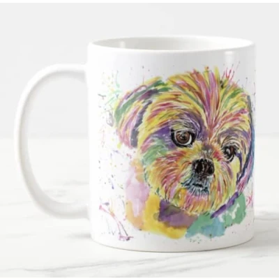 Vixar Shih Tzu Dog Pet Watercolour Rainbow Art Coloured Mug Cup Gift Birthday Work Office Christmas Tea Coffee (White)