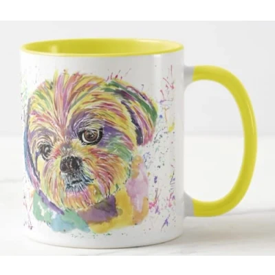 Vixar Shih Tzu Dog Pet Watercolour Rainbow Art Coloured Mug Cup Gift Birthday Work Office Christmas Tea Coffee (Yellow)