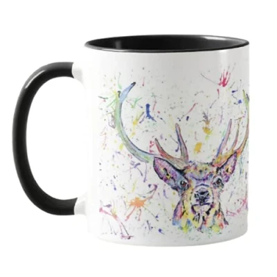 Vixar Stag Scottish Wildlife Watercolour Rainbow Art Coloured Mug Cup, Gift, Birthday, Work, Office, Christmas Tea Coffee (Black)