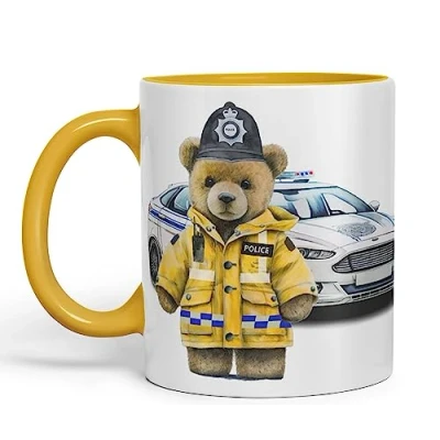 Vixar Teddy Bear Policeman Police Themed Ceramic Mug Coloured Cup Gift Birthday Work Office Tea Coffee (G Yellow)