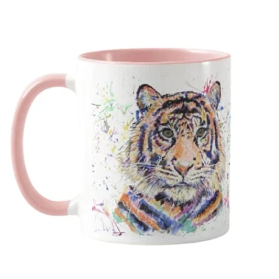 Vixar Tiger Watercolour Rainbow Art Coloured Mug Cup, Gift, Birthday, Work, Office, Christmas Tea Coffee (Pink)