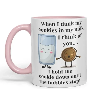 Vixar When I Dunk My Cookies in Milk Think of You... Sarcastic Joke Ceramic Coloured Mug Cup for Tea Coffee Hot Brew 330ml 11 Oz Gift (Pink)