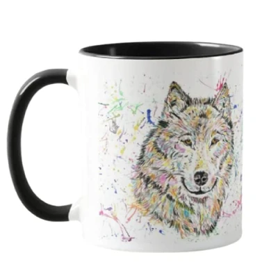 Vixar Wolf Watercolour Rainbow Art Coloured Mug Cup, Gift, Birthday, Work, Office, Christmas Tea Coffee (Black)