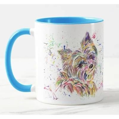 Vixar Yorkshire Terrier Yorkie Dog Pet Watercolour Rainbow Art Coloured Mug Cup Gift Birthday Work Office Christmas Tea Coffee (L Blue)