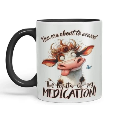 Vixar You are About to exeed, The Limits of My Medication! Joke sarkasm Sarcastic Ceramic Coloured Mug Cup for Tea Coffee Hot Brew 330ml 11Oz Gift (Black)