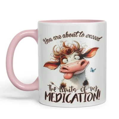 Vixar You are About to exeed, The Limits of My Medication! Joke sarkasm Sarcastic Ceramic Coloured Mug Cup for Tea Coffee Hot Brew 330ml 11Oz Gift (Pink)