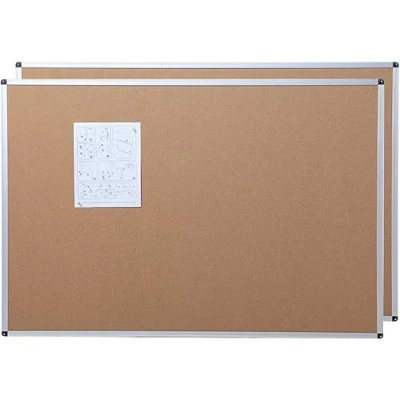 2 Pack Overall size: 120 x 90 cm ( frame included); Available surface size: 116 x 86 cm Environmental friendly natrual cork surface, self-healing, accepts pins Silver finished aluminium frame, ABS plastic corner with screw-fixing in corners Easy installation, with fixing kits included, can be mounted vertically or horizontally