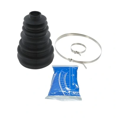 Highly elastic SKF Universal boot kit. Highest quality in line with OE specifications. Vehicle safety is a SKF priority and our high quality parts are designed for safe and lasting repairs. Product must be installed by knowledgeable mechanic using correct tooling and in strict accordance with SKF instructions and the vehicle mounting instructions. Scan QR code on box product label to access SKF instructions and more detailed product and technical information. Height: 146 mm ; Supplementary article/Supplementary information 2: with clamps ; Inner diameter 1: 22 mm ; Inner diameter 2: 86 mm Highly elastic SKF Universal boot kit. Highest quality in line with OE specifications. Vehicle safety is a SKF priority and our high quality parts are designed for safe and lasting repairs. Product must be installed by knowledgeable mechanic using correct tooling and in strict accordance with SKF instructions and the vehicle mounting instructions. Scan QR code on box product label to access SKF instructions and more detailed product and technical information.