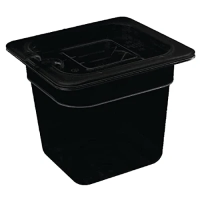 Lids and containers are dishwasher safe for easy cleaning Temperature range from -40║C to 100║C Polycarbonate material is dishwasher safe and pans have been designed to drip dry quickly Containers are lightweight and stackable GN 1/6. Sixth Size. Black. 65mm deep. Capacity: 1.5 litre