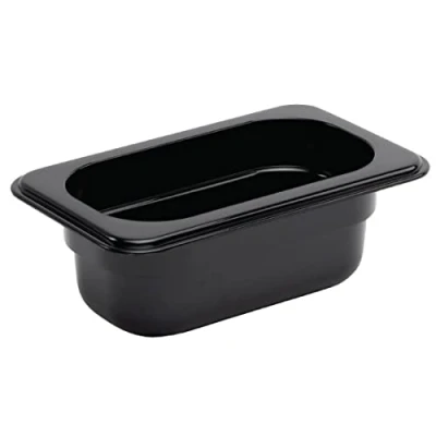 Lids and containers are dishwasher safe for easy cleaning Temperature range from -40║C to 100║C Polycarbonate material is dishwasher safe and pans have been designed to drip dry quickly Containers are lightweight and stackable GN 1/9. Ninth Size. Black. 65mm deep. Capacity: 0.6 litre
