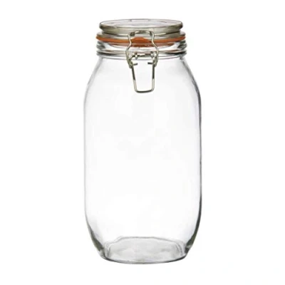 AMPLE STORAGE: 2Ltr capacity perfect for preserving fruits, jams, chutneys, rice, flour, & more VERSATILE CONTAINER: Ideal for storing a variety of wet & dry ingredients, maintaining flavour & quality DURABLE MATERIAL: Made from robust glass designed to withstand regular use in any kitchen CONVENIENT SIZE: Measures 255mm in height & 89mm in diameter, making it a practical size for your shelves & worktops AIRTIGHT SEALING: Comes with a rubber ring & clip for a secure, air-tight seal to keep contents fresh EASY TO USE: Simple to open & close with the sturdy clip-top mechanism, ensuring quick access & effortless maintenance