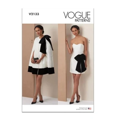 Vogue Patterns Sewing Pattern V2133H5 Misses' Short Cape and Fitted Dress with Detachable Bow H5(6 8 10 12 14)