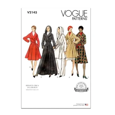 Vogue Patterns Sewing Pattern V2145Y5 Misses' Vintage Lined Wrap Coat and Belt Y5 (18 20 22 24 26)