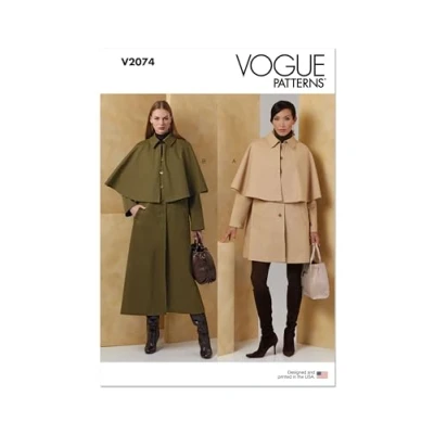 Vogue Sewing Pattern V2074A Misses' Cape Coat in Two Lengths A (S M L XL XXL)