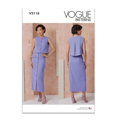 Vogue Sewing Patterns V2118H5 Misses' Top and Skirt H5(6 8 10 12 14)