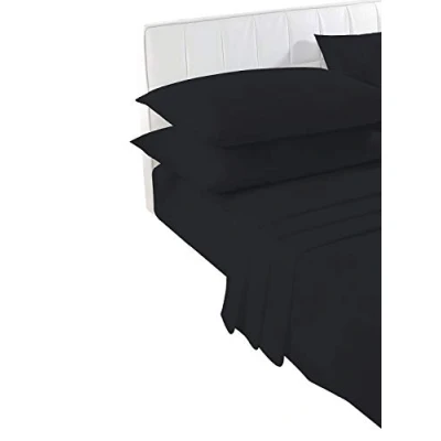 Voice7 4FT Extra Deep Fitted Sheet + 2 Pillow Cases [3 Piece Set] Box Depth 16 inches (40 cm) Percale Bed Sheets Poly Cotton Fabric (Black, Small Double)