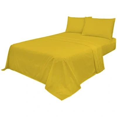 Voice7 Non Iron Mustard 4pc Sheets Set (Fitted Sheet + Flat Pillow Cases Pair) Percale Super Poly Cotton Bedding Sets (Mustard, king)