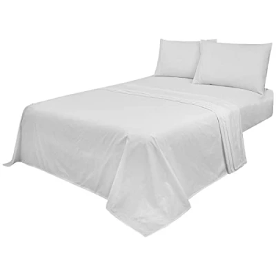 Voice7 Non Iron White 4pc Sheets Set (Fitted Sheet + Flat Pillow Cases Pair) Percale Super Poly Cotton Bedding Sets (White, King)