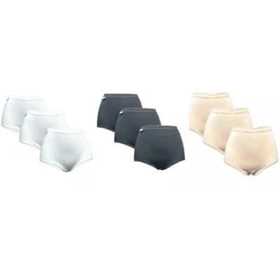 Voice7 Pack 3 Women's Maxi Briefs Seamless (Black White Beige) High Waist Smooth Knickers Ladies Underwear Soft Modal Pants (2XL 24/26)