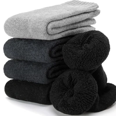 High Quality Mens Socks: VoJoPi thermal socks for men are made of high-quality wool and polyester blended fabrics, which are soft and thick, bringing you the ultimate comfort. The inner lining is fluffy and warm, which keeps your feet warm. Warmth & Softness: This mens thermal socks features a soft cotton terry lining and thickened terry design, which instantly warms up when it touches the skin and effectively locks in body temperature, keeping your feet warm and dry even in the coldest winter. Elastic Cuffs and Reinforced Heel: Enhanced with ribbed textures, it not only ensures a snug and comfortable fit but also reduces pressure on the feet, keeping you comfortable even after long hours of wear. Reinforced heel and toe for increased abrasion resistance and longer-lasting durability. Suitable for Many Scene Wearing: Thick winter socks for men are widely used in indoor or outdoor sports activities, hiking, skiing, leisure, business, daily work and other scenes. Classic color matching, no burden on dressing. Practical Gifts: These cozy wool socks are perfect presents for men, you can choose them as Christmas gifts, Birthday gifts, Halloween gifts or other holiday gifts for father, husband or boyfriend.