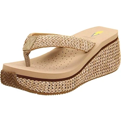 VOLATILE Women's Island Wedge Sandal, Natural Raffia, 6 UK