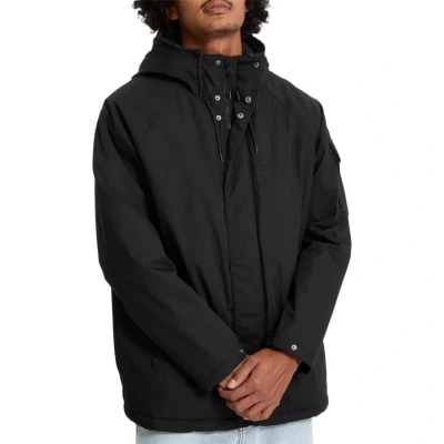 * The Volcom Stoke Stone II 10K jacket is a robust and heavyweight hooded jacket * Black poly-cotton fabrication, with tonal details * Made from a water-resistant 10K (10,000mm) fabric to keep you dry in wet conditions * The fabric is treated with Teflon EcoElite™ coating that offers resistance to dirt and stains * Lined throughout with a polyester taffeta lining that offers excellent comfort with a filling of recycled polyester fibres for warmth * Mid-length and a relaxed fit * Zippered front closure * Multiple pocket options on either side of the zip * Ribbed elasticated cuffs * Volcom branded embroidered logo on the left chest * Materials: 65% Recycled Polyester / 35% Cotton