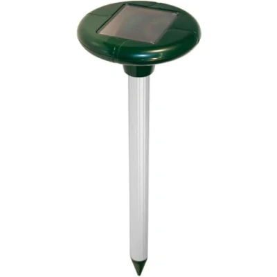 Vibration-Based Deterrent Produces vibrating sounds at intervals of up to 30 seconds to disturb voles' sensitive hearing and keep them away from your property and garden. Large coverage: with a circular effect range of approx. 30 metres, the device offers wide coverage for areas up to 650 m² to effectively protect garden areas. SOLAR POWERED BATTERY Features a built-in battery that is charged by solar energy, which is an environmentally friendly and sustainable energy source. High-quality construction: The aluminium and plastic housing ensures durability and resistance to the elements, while the device weighs 360 g is easy to handle. Customizable frequency ranges: With a frequency range of 400Hz to 1000Hz, the device can be targeted to the sensitivity of voles to ensure effective deterrence.