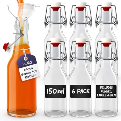 volila Glass Bottles with Stoppers 150ml 6 Pack, Clear Swing Top for Homebrewing, Beverages, Kombucha, Wine, Vinegar and Oil