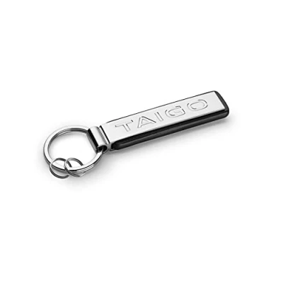 Original Volkswagen Taigo Metal Key Ring 100% Genuine Volkswagen Accessory Made of high quality material, with Taigo engraving | combined with PU leather | with two additional key rings Volkswagen part number: 000087010CGYPN Colour: silver, material: metal, length: 100 mm, width: 45 mm, height: 3 mm