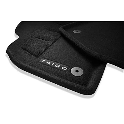 Original VW textile floor mats, design: Optimat 100% perfect fit as it is an original Volkswagen accessory Textile floor mat look with rubber foot mat function | with foot protection in the shoe heel area | four-piece complete set for front and rear | mat type: three-dimensional design | back coating: plastic nubs | design: with Taigo lettering | colour: black | hem band: black | mounting system: push button (round) Box contents: 1 set = 4 x floor mats (2 x front, 2 x rear). VW part number: 2G7061445 WGK Suitable for VW Taigo from 2022