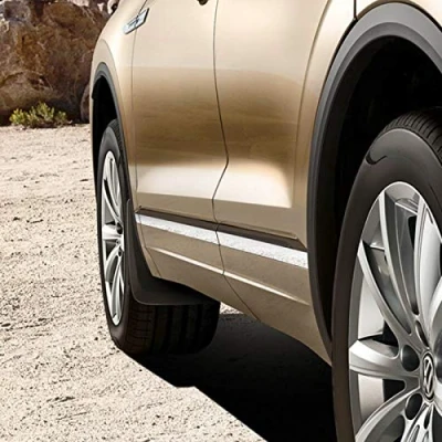 Original VW Touareg mud flap for the two front wheel arches 100% perfect fit original Volkswagen accessories Colour: Black (grained) Box contents: 1 set = 2 pieces (front LH & RH) includes Kit of TV mounting screws, wall fixings & instructions Suitable for VW Touareg III (CR) from 2018