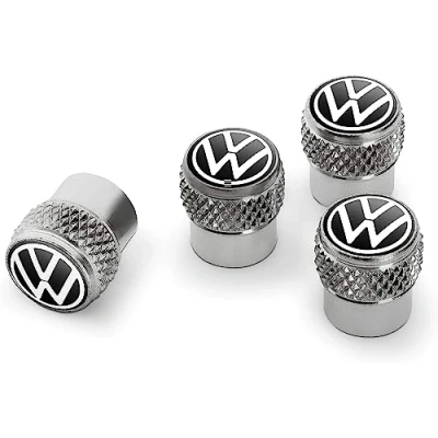 Original VW valve caps, for rubber and brass valves 100% perfect fit as Volkswagen original accessories With new Volkswagen logo. Material: nickel-plated brass. Colour: silver Box contents: 1 set = 4 x valve caps VW part number: 000071215D