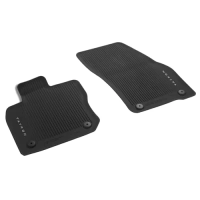 COMPLETE: Original Volkswagen Tayron front floor mats set of 2 front rubber mats with model logo. PRECISE FIT: Perfectly tailored to the Tayron model since 2025, equipped with integrated snap button attachment points. PRACTICAL: Easy to clean, non-slip floor mats made of durable rubber with reduced weight. UNIQUE DESIGN: Special material composition for light weight while maintaining high durability. VERSATILE: Compatible with all drive versions including hybrid and plug-in hybrid.