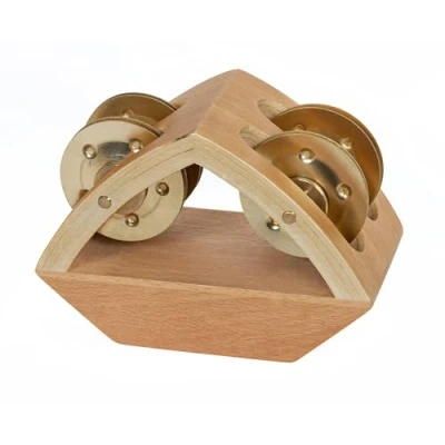 The compact shakerino combines the sunny sound of noble brass jingles with the crisp sound of a mini wood shaker. With the combination of a curved tri-angle design and a lightweight shaker body, the Shakerino is extremely comfortable to hold and extremely easy to play. Features – Hardwood frame with beech veneer – 4 pairs of brass jingles – Exclusively manufactured jingles with 5-point hammering – Additive brass discs for a percussive effect – 4 mm brass axles – Integrated wood shaker with steel pellet filling