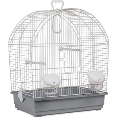Small bird cage in modern colours White wire with pink base and accessories Made in europe Easy to build 41 x 25½ x 48cm
