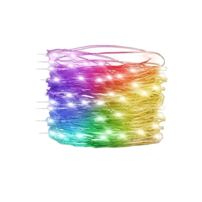 Create unique atmospheres with our LED fairy lights. [Easy to Use] with copper wire and [RGBY colors]. (5 m in length). [5M LED garland] with [copper wire], powered by [3AA battery], colors [RGBY] (create unique atmospheres). Ideal for [decorating]. 5 m LED fairy lights (with copper wire) for decoration. [RGBY Colors], [Easy to Install] Use on 3AA battery, ideal for environments.