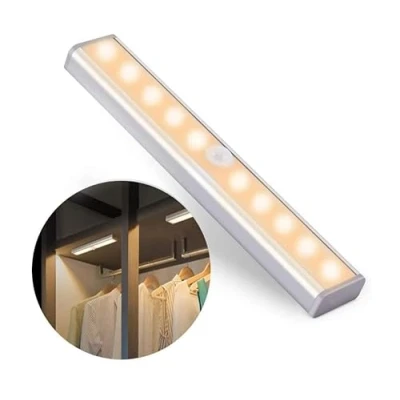 Volunx 10 LED Motion Sensor Detector Closet Lights Battery Operated Magnetic Under Cabinet Strip Wireless Stick Up Night Bar for Kitchen Hallway Stairs Bedroom Wardrobe