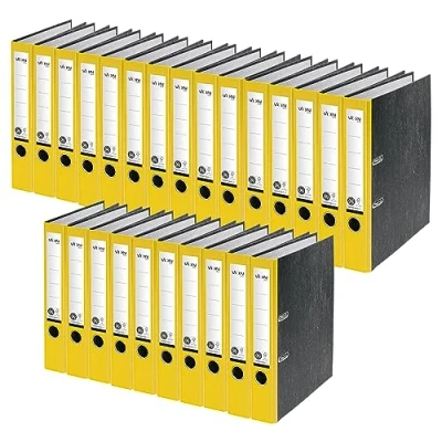 High-quality from Leitz A4 folder with 2 rings: ideal for organising important documents; 50 mm spine width, with space for up to 350 sheets of paper (80 g/m²) Flexible storage solution: with glued back label for optimal overview and a coloured spine for colour coding Environmentally friendly & sustainable: the folder impresses with 100% recycled cardboard, is durable and offers protection and storage space for your documents with its scratch-resistant paper cover Ideal for office, school or home: high quality folder with finger hole, rado rings and metal fittings for permanent filing of documents Box contents: 1 x Von A4 folder with 2 rings, cardboard, 50 mm spine width, available in a selection of bright colours with modern VON print, yellow, 10540015