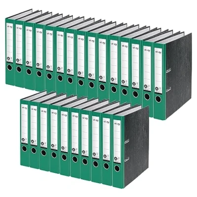 High-quality from Leitz A4 folder with 2 rings: ideal for organising important documents; 50 mm spine width, with space for up to 350 sheets of paper (80 g/m²) Flexible storage solution: with glued back label for optimal overview and a coloured spine for colour coding Environmentally friendly & sustainable: the folder impresses with 100% recycled cardboard, is durable and offers protection and storage space for your documents with its scratch-resistant paper cover Ideal for office, school or home: high quality folder with finger hole, rado rings and metal fittings for permanent filing of documents Box contents: 1 x Von A4 folder with 2 rings, cardboard, 50 mm spine width, available in a selection of bright colours with modern VON print, green, 10540055