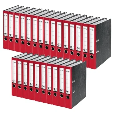 High-quality from Leitz A4 folder with 2 rings: ideal for organising important documents; 50 mm spine width, with space for up to 350 sheets of paper (80 g/m²) Flexible storage solution: with glued back label for optimal overview and a coloured spine for colour coding Environmentally friendly & sustainable: the folder impresses with 100% recycled cardboard, is durable and offers protection and storage space for your documents with its scratch-resistant paper cover Ideal for office, school or home: high quality folder with finger hole, rado rings and metal fittings for permanent filing of documents Box contents: 1 x Von A4 folder with 2 rings, cardboard, 50 mm spine width, available in a selection of bright colours with modern VON print, red, 10540025
