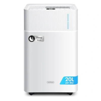 ENERGY EFFICIENT DRYING: Say goodbye to stubborn damp with the VonHaus 20L dehumidifier. Running at just 8p an hour*, cut down your energy bills and create a fresher home today. *April 2025 AUTO, LAUNDRY & SLEEP MODES: Auto mode activates the dehumidifier when the humidity strays from your set level, laundry mode runs continuously, and sleep mode reduces the noise and switches off the display. 3-COLOUR HUMIDITY DISPLAY: Monitor the humidity levels of your room with the dehumidifier's humidity sensor. Both a dehumidifier and air purifier, the built-in filter maintains air quality. OPTIONAL DRAINAGE HOSE: Either empty the 4.5L tank or connect the drain hose for continuous drainage. Paired with the 24-hour timer and overflow cut-off, you can simply set the air dehumidifier and forget. OUR BRAND PROMISE: Established in 2009, VonHaus is the helping hand you need to stay comfortable all year round. Designed using innovative technology, keep your home fresh with our dehumidifiers for home., Weight: 30.423792156 Pounds, Manufacturer: DOMU Brands
