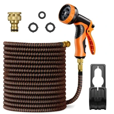 VonHaus Expandable Garden Hose 50FT Flexible Pipe with 10 Pattern Spray Nozzle & 1/2" and 3/4" Brass Fittings 4 Layer Latex Kink Free Design Wall Mounted Heavy Duty Retractable Water